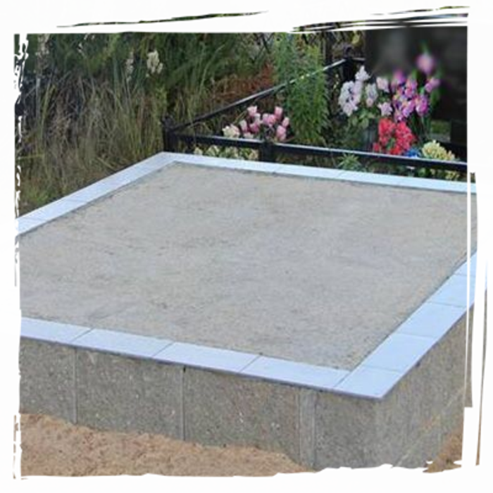 Наша компания делает фундамент под памятник на кладбище из бетона. При его производстве мы используем только качественные материалы. Для замешивания раствора мы используем цемент высшей марки, а также другие связующие компоненты, которые придают ему прочности, устойчивости к перепадам температур и другим внешним факторам.